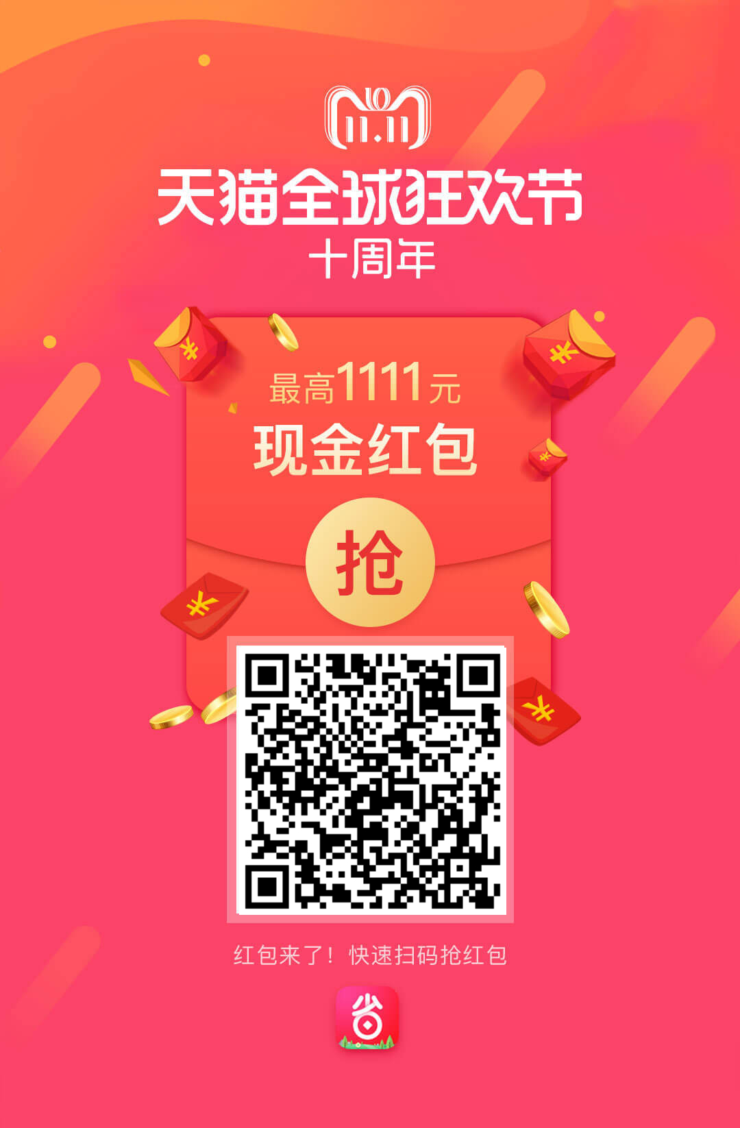 淘宝双11超级现金红包1111元!就在10月20日!